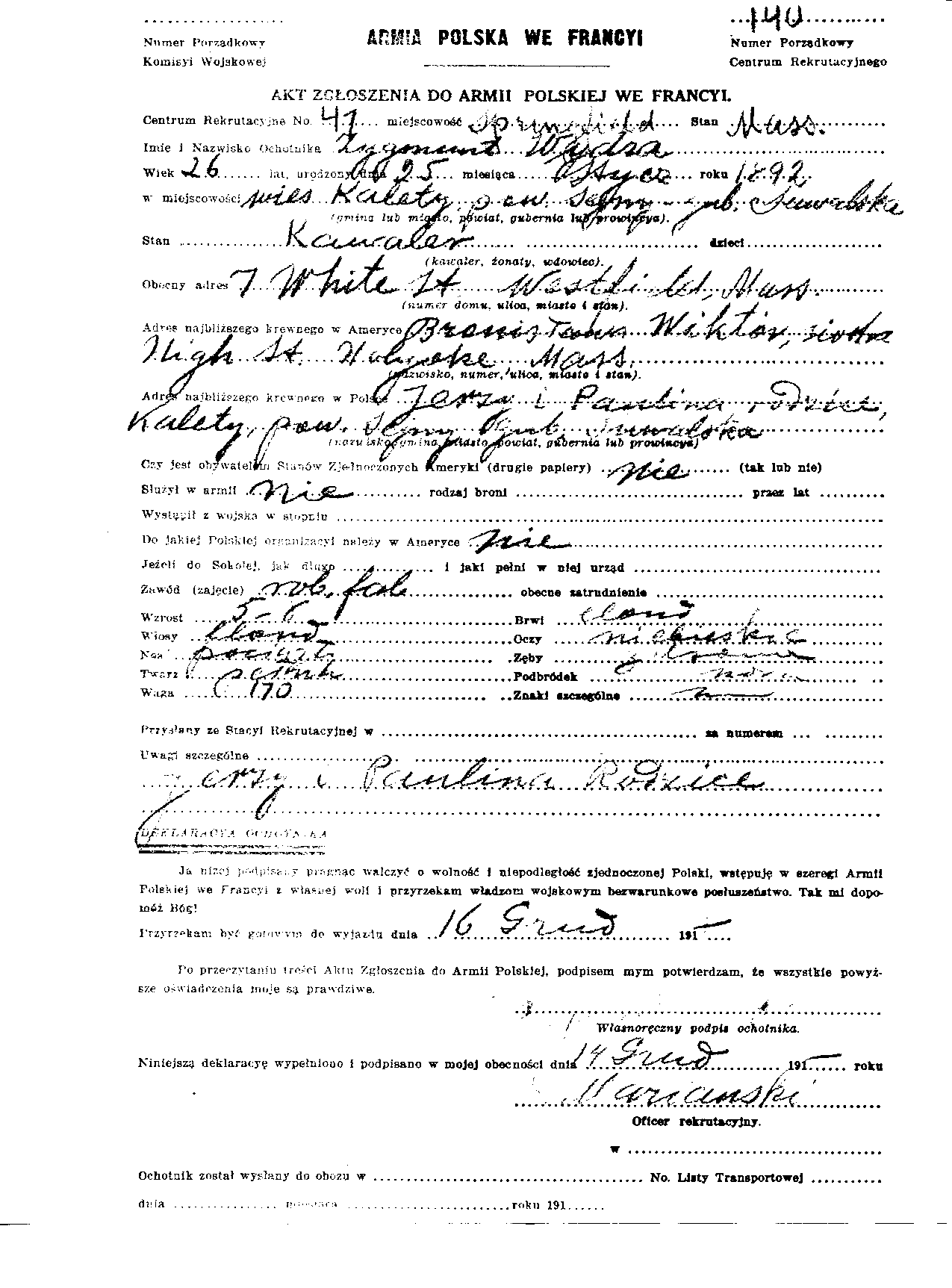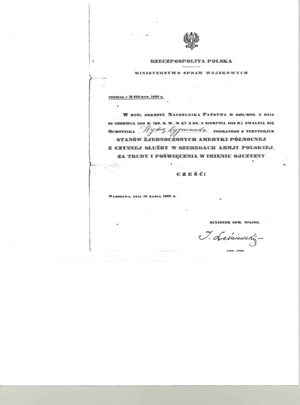 | Milit-Beg* | 1918-12-16 | Springfield, Massachusetts, with the Army of Poland in France (Haller's Army)6 |